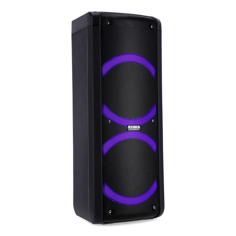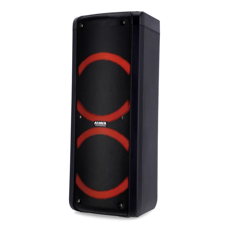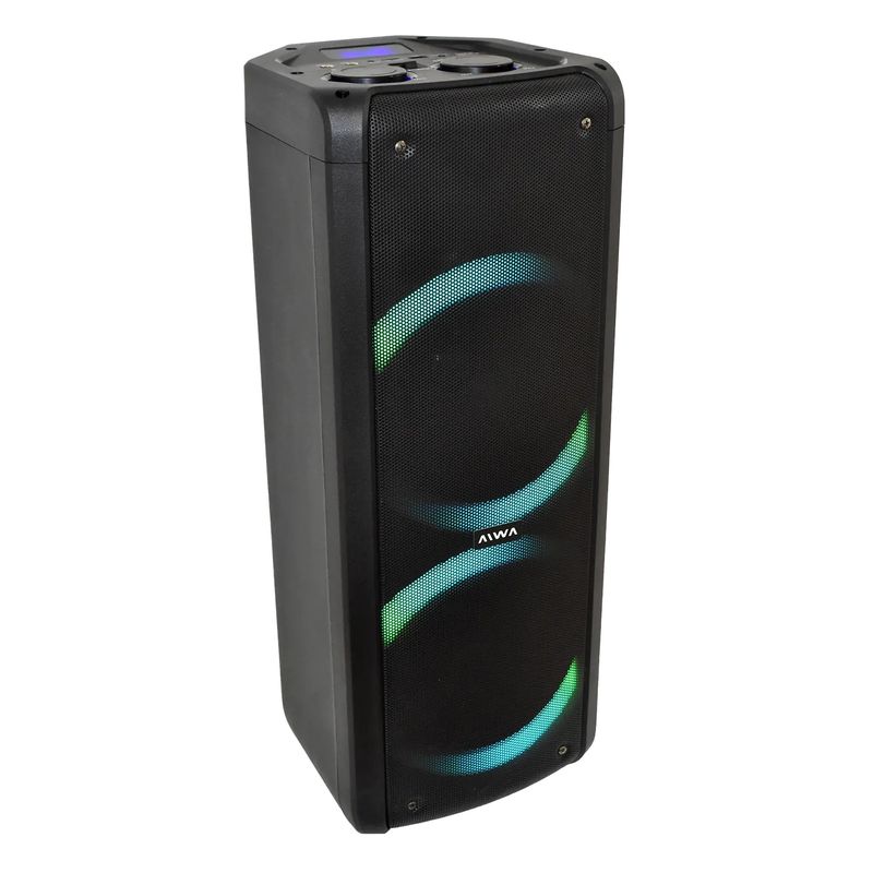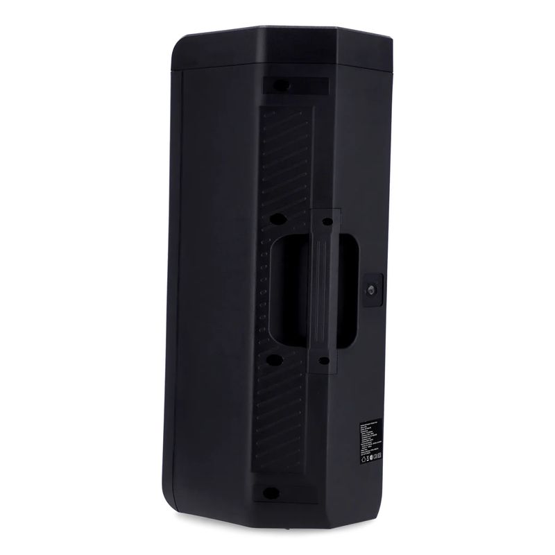 Una torre de sonido portátil con conexión Bluetooth y una potencia PMPO de 6500W.