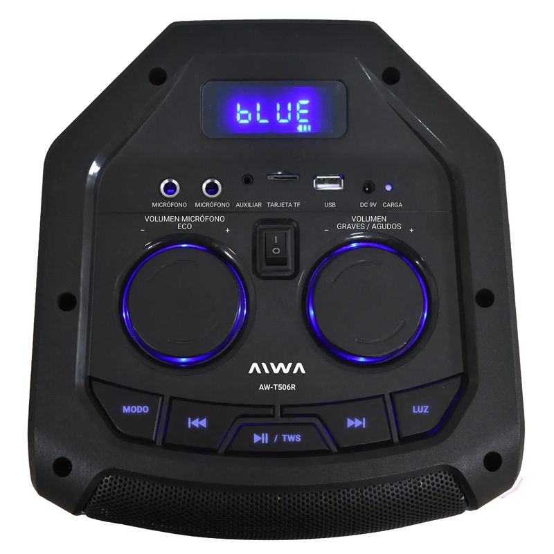 Reguladores: Graves, Agudos, Eco y Volumen de Micrófono
