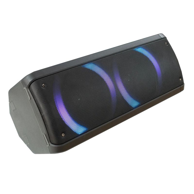 Incluye función TWS para emparejar dos unidades, entradas para micrófono y función Power Bank para cargar dispositivos.