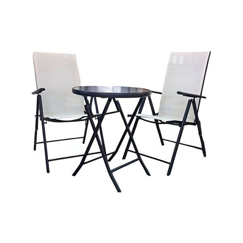 Otros | Set 3 Piezas Acero 2 Sillones + Mesa de 60 cm Vidrio |
