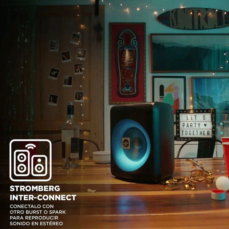 Utiliza Bluetooth y cuenta con la función Stromberg Connect para emparejar dos parlantes y duplicar la potencia.
